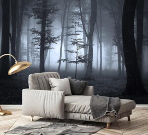 Many people rely on framed artwork, canvas prints, or shelving to decorate their walls. While these can be beautiful, they don’t have the same immersive impact as a wall mural. The Foggy Dark Forest Wallpaper eliminates the need for multiple wall hangings by filling the entire wall with one cohesive design.