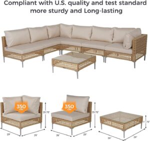 One of the biggest advantages of the Grand Patio 7-Piece Wicker Patio Furniture Set is its generous seating capacity. With multiple sectional pieces, it can comfortably seat six to seven people, making it ideal for gatherings.